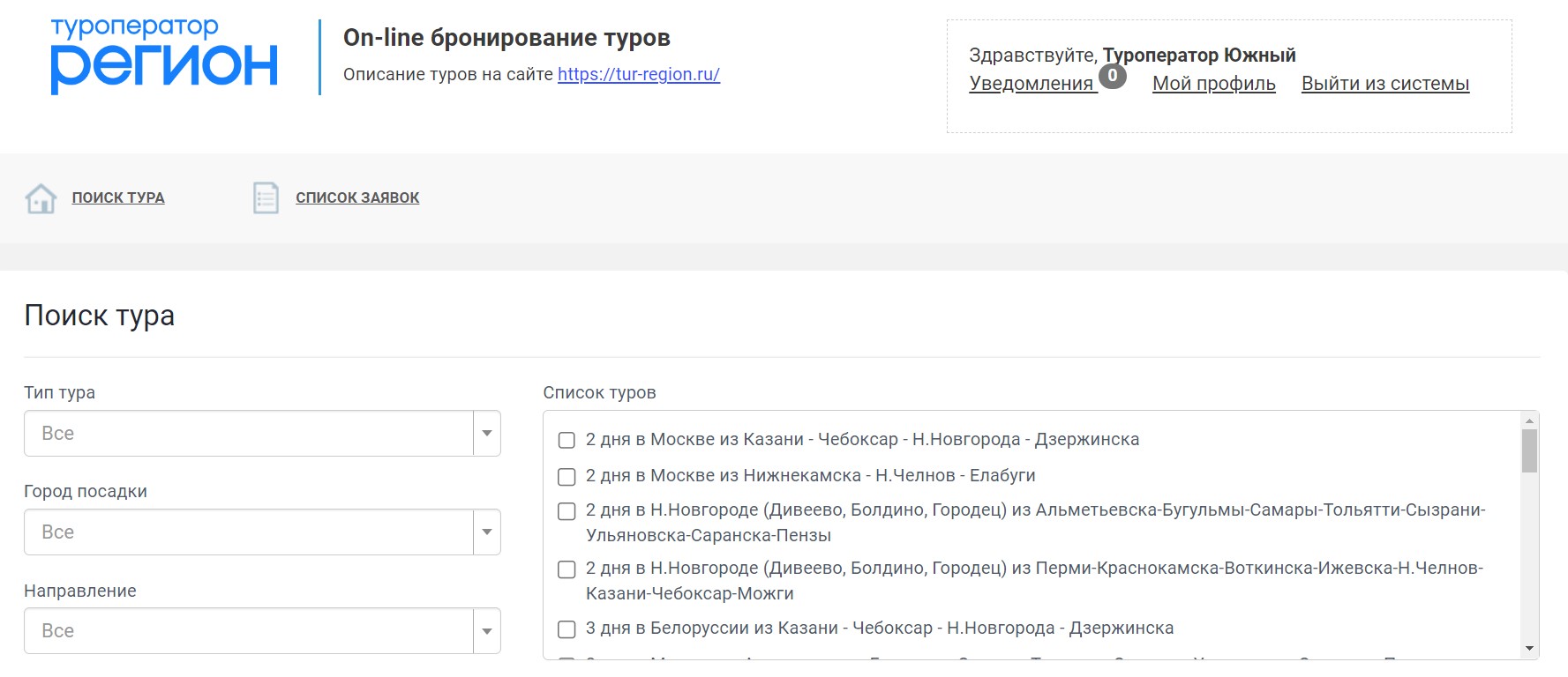 Листая ниже вы сможете ознакомиться с интерфейсом нашей новой системы и посмотреть как формируется новая заявка на тур